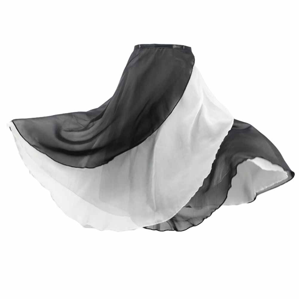 Women 2-Layer Reversible Chiffon White Black Ballet Skirt Waist Tie Long Scarf Tutu Skirts, 58cm