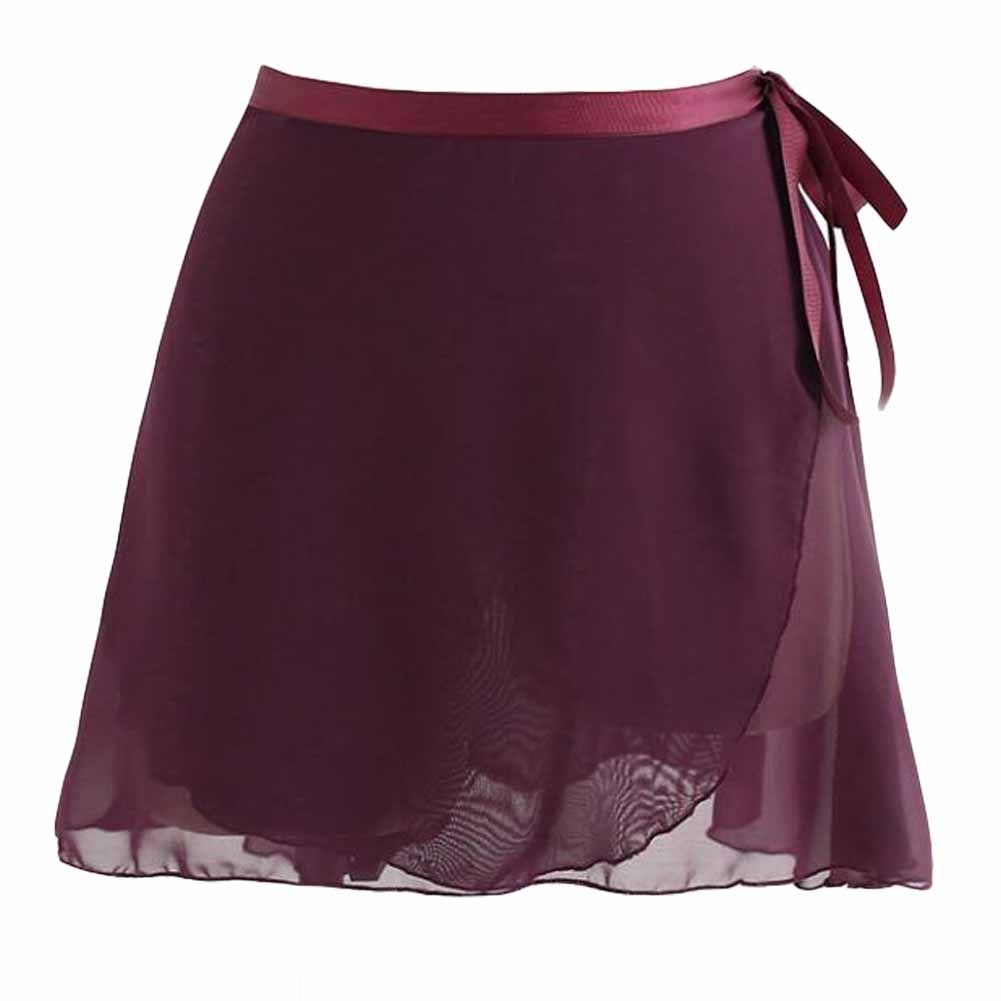 Home > Women Ballet Skirt Skate Over Scarf Tutu Skirts Chiffon Dance Wrap Skirt with Waist Tie, Dark Purple 38cm