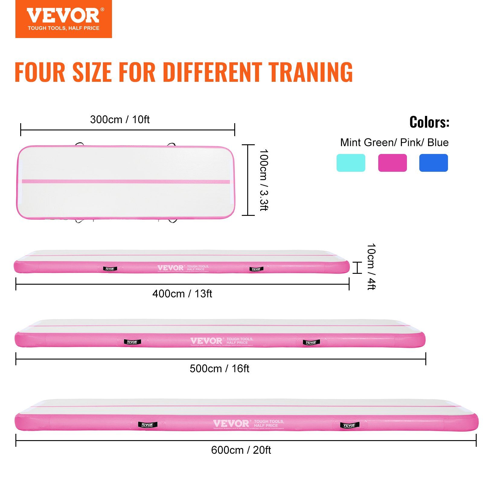 4.Variety of Sizes and Colors: Offering air tumbling mats in lengths of 10 ft, 13 ft, 16 ft, and 20 ft to suit your specific needs. Available in multiple colors to add vibrancy to your training and lifestyle. The mat is versatile, suitable for tumbling, gymnastics, yoga, artistic activities, and can also be used on beaches, swimming pools, backyards, or lawns – just avoid sharp objects.