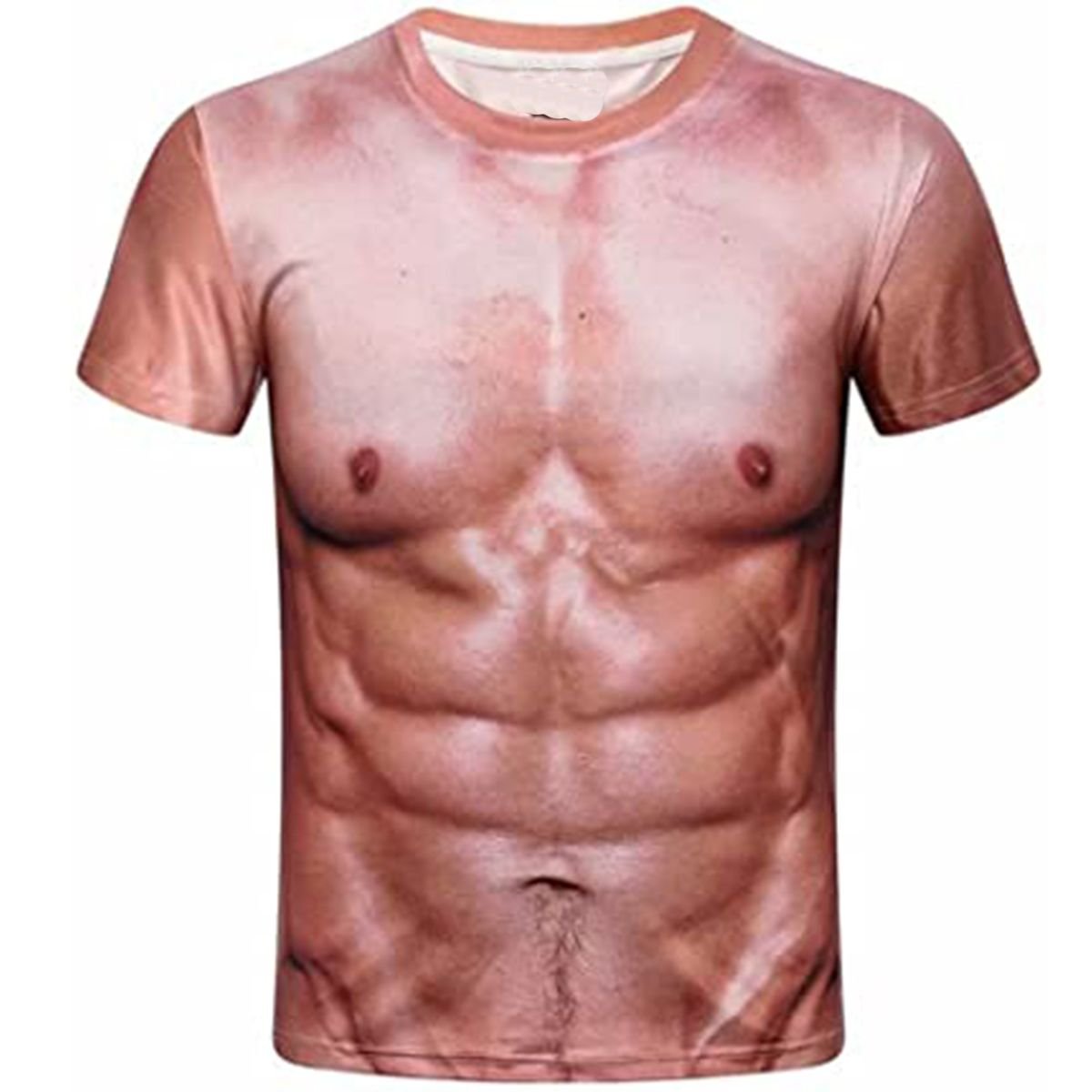Mens Funny Muscle Printed Short Sleeve T-Shirt Muscle Man Costume Summer Tees